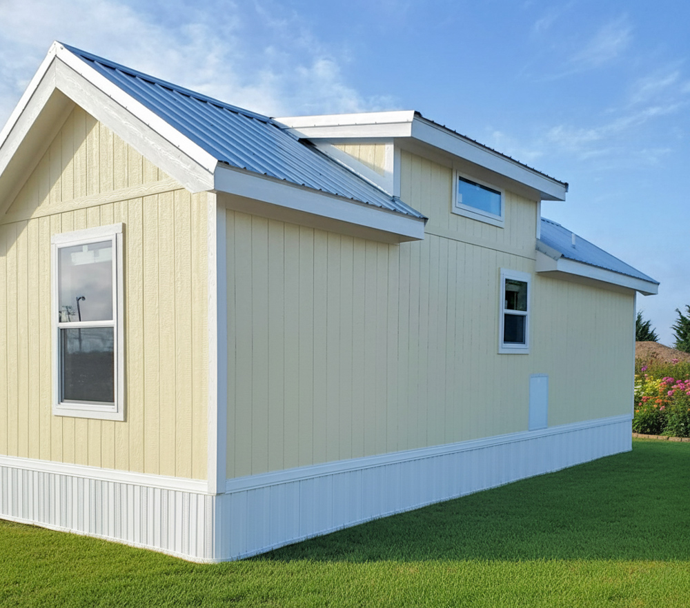 - 8/12 Roof pitch (6/12 on 15’ wides)