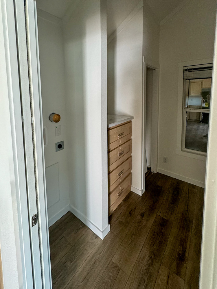 - Flat white ‘Craftsman’ ceiling, window & door trim